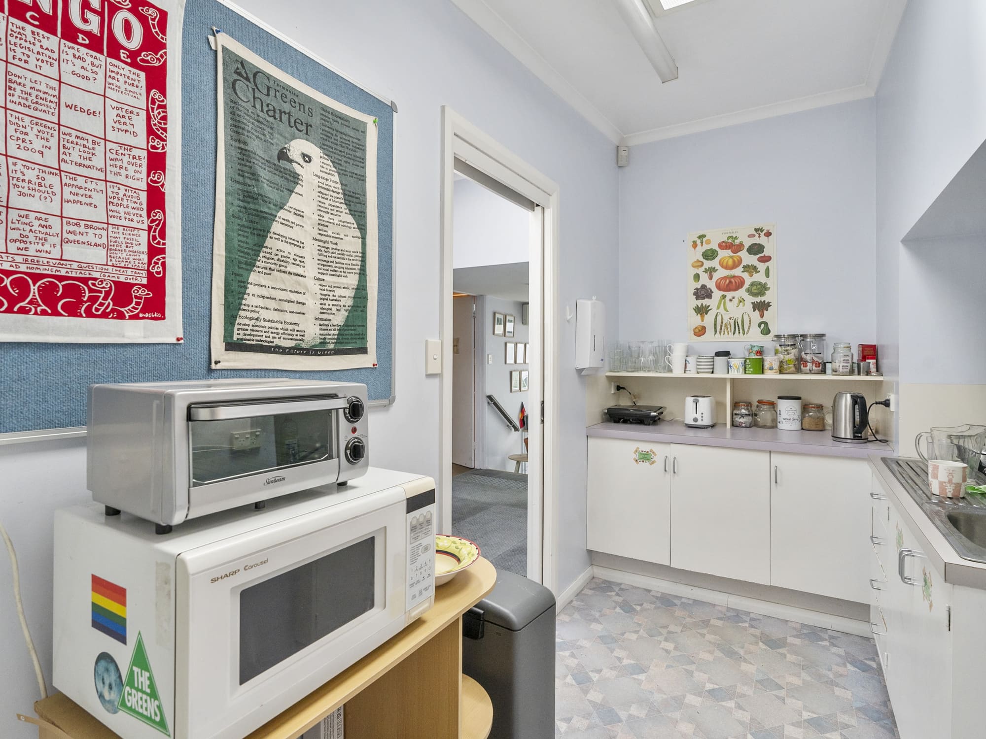 Positioned on a prominent corner in the heart of North Hobart, the property offers a functional standalone commercial premises just 1km* from Hobart CBD. Spanning 284 sqm* over two levels, the building features a highly versatile layout incorporating multiple offices, meeting rooms, reception areas and staff amenities.Dual street frontages on a key arterial link between the Hobart CBD and northern suburbs provide excellent visibility and signage potential. Existing building services include heat pumps, a monitored security system, smoke detectors and modern amenities. With strong natural light, an upper-level balcony and practical building infrastructure, this is a rare opportunity within one of Hobart’s most tightly held fringe precincts.
