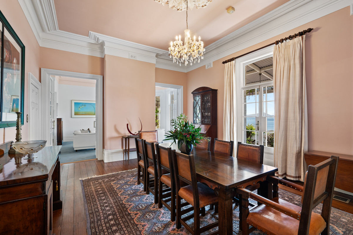 Privately nestled behind a gated driveway in one of Sandy Bay's most prestigious enclaves, 'Elverton' is being offered to the market for the first time in 35 years. A grand Victorian residence set on 1882sqm of stunning established grounds with sweeping views from the Tasman Bridge to Bruny Island.This stately home spans across one level and is rich in original character, with exceptionally high ceilings, ornate detailing, and five working Victorian fireplaces. The layout is both generous and versatile, offering two distinct living wings that cater to multi-generational families, guests, or flexible lifestyle needs.