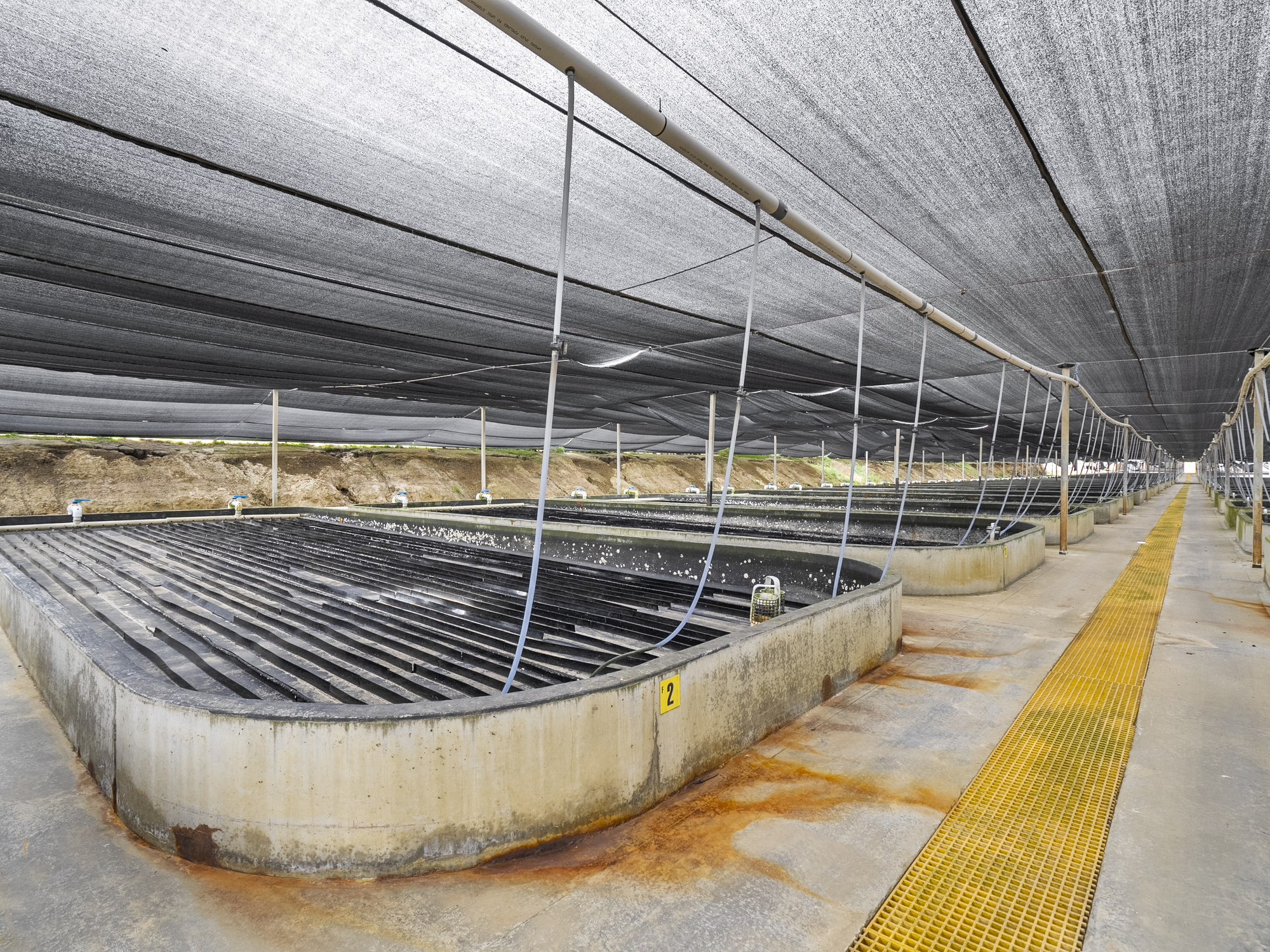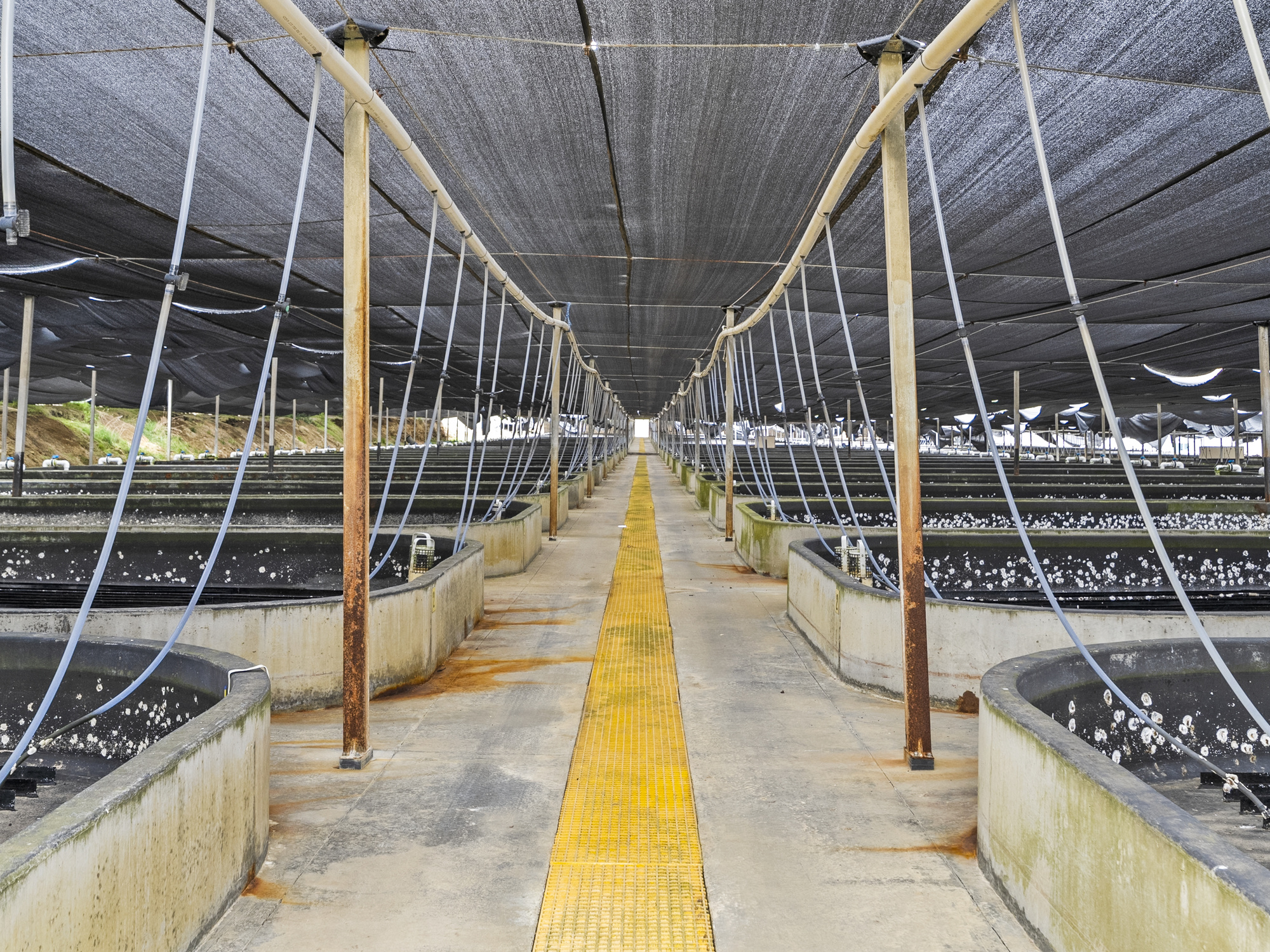- Grow Out Tanks: 3 Ha* under shade cloth; including 179 x 16,000L* and 25 x 8,000L* concrete tanks with full plumbing and aeration.
