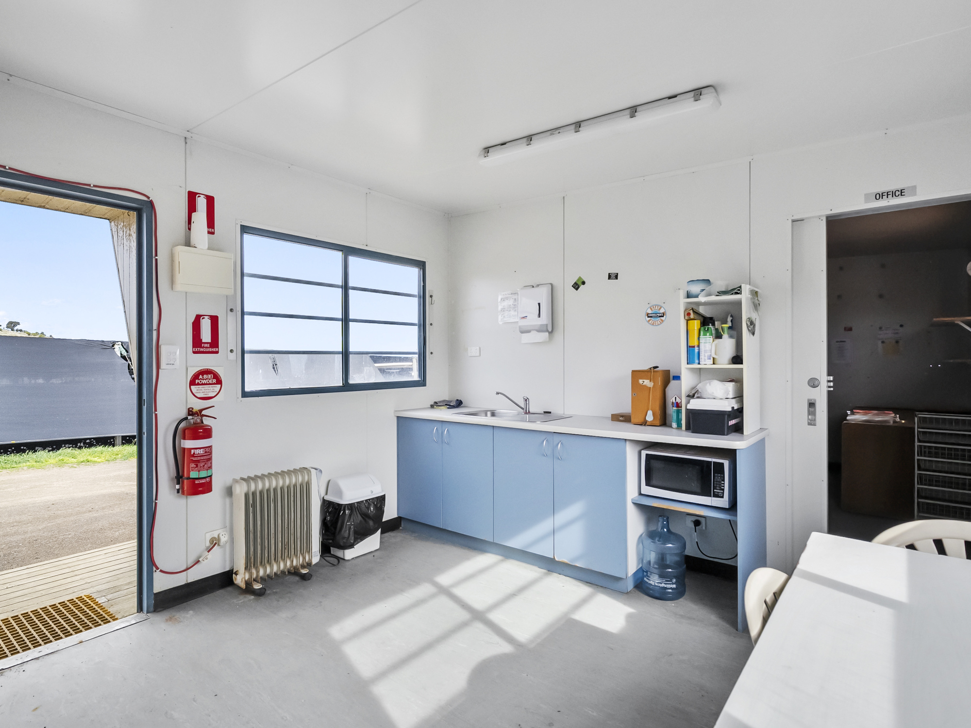 - Additional Buildings: Office with lunchroom, workshop, and storage containers.